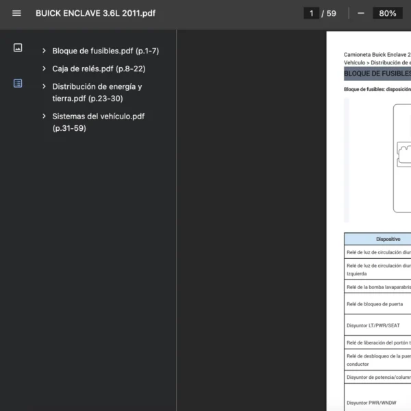 PDF visible en teléfono, tablet o PC; compatible solo con BUICK ENCLAVE 2011. Si requieres otra variante/modelo, contáctanos.