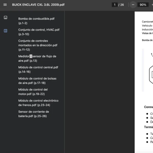 PDF visible en teléfono, tablet o PC; lectura clara y lista para taller. Compatible solo con BUICK ENCLAVE CXL 2009. Si requieres otra variante/modelo, contáctanos.