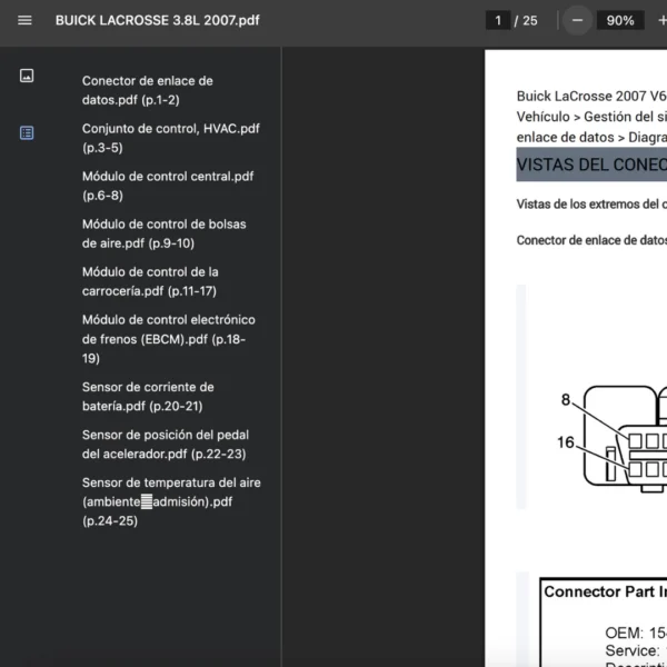 PDF visible en teléfono, tablet o PC; compatible solo con BUICK LACROSSE 2007. Si requieres otra variante/modelo, contáctanos.