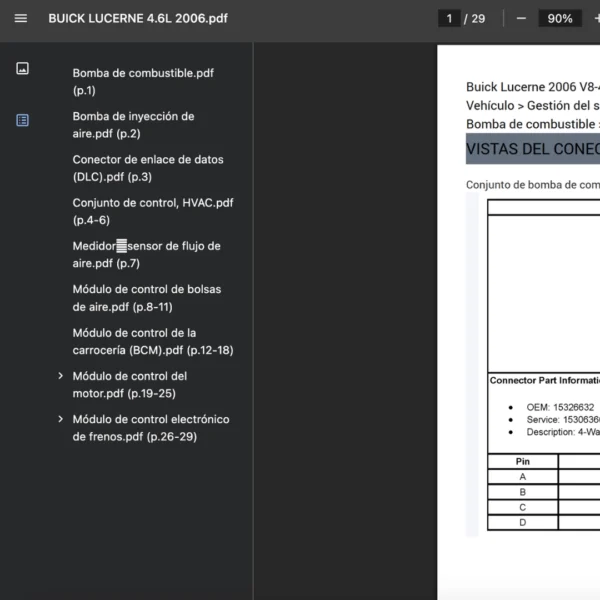 PDF visible en teléfono, tablet o PC; compatible solo con BUICK LUCERNE 2006. Si requieres otra variante/modelo, contáctanos.