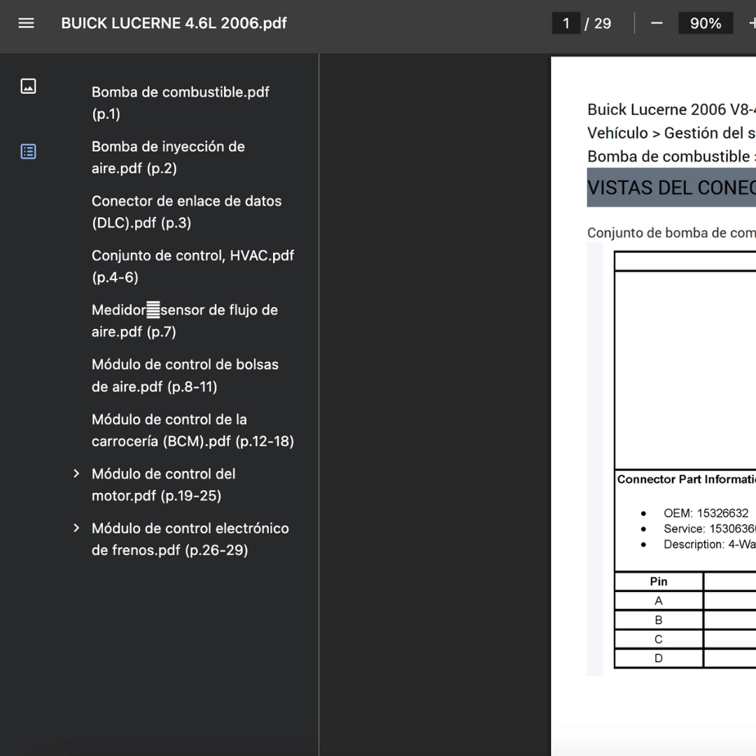 PDF visible en teléfono, tablet o PC; compatible solo con BUICK LUCERNE 2006. Si requieres otra variante/modelo, contáctanos.