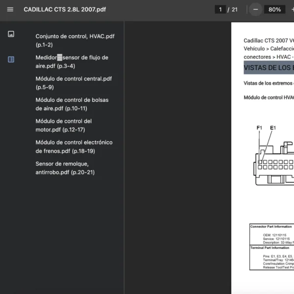 PDF visible en teléfono, tablet o PC; compatible solo con CADILLAC CTS 2007. Si requieres otra variante/modelo, contáctanos.