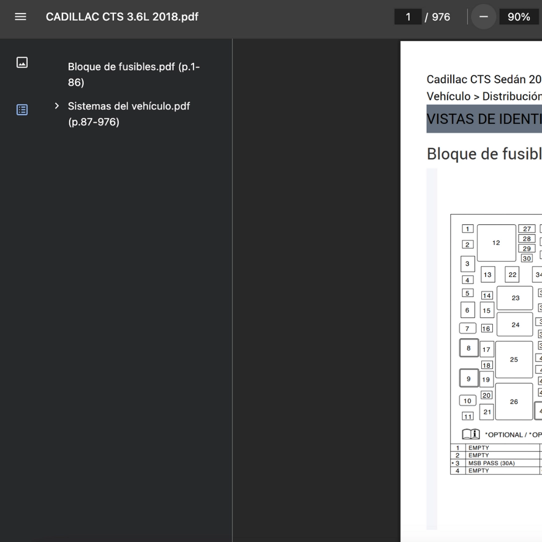 PDF visible en teléfono, tablet o PC; compatible solo con CADILLAC CTS 2018. Si requieres otra variante/modelo, contáctanos.