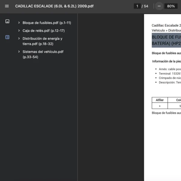 PDF visible en teléfono, tablet o PC; compatible solo con CADILLAC ESCALADE 2009. Si requieres otra variante/modelo, contáctanos.