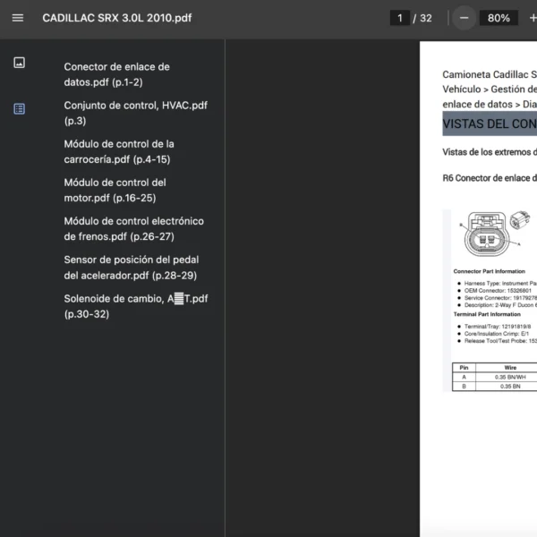 PDF visible en teléfono, tablet o PC; compatible solo con CADILLAC SRX 2010. Si requieres otra variante/modelo, contáctanos.