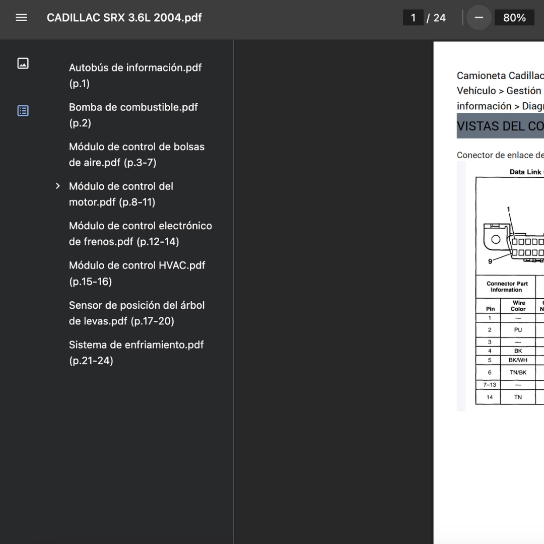 PDF visible en teléfono, tablet o PC; compatible solo con CADILLAC SRX 2004. Si requieres otra variante/modelo, contáctanos.