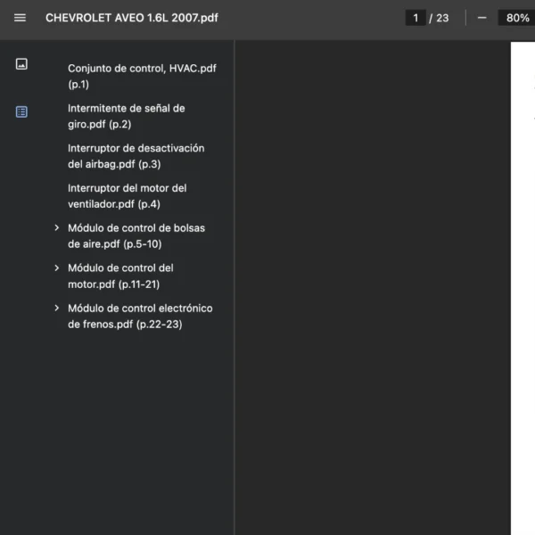 PDF visible en teléfono, tablet o PC; compatible solo con CHEVROLET AVEO 2007. Si requieres otra variante/modelo, contáctanos.