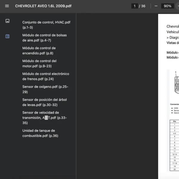 PDF visible en teléfono, tablet o PC; compatible solo con CHEVROLET AVEO 2009. Si requieres otra variante/modelo, contáctanos.