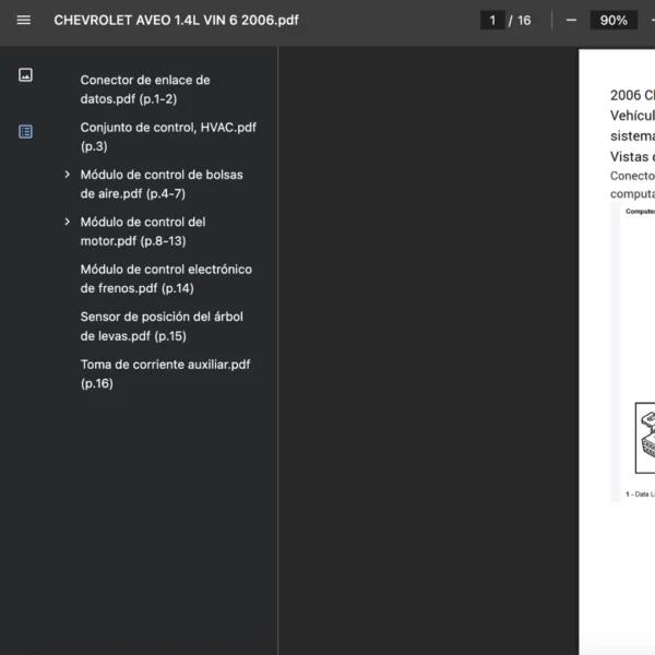 PDF visible en teléfono, tablet o PC; compatible solo con CHEVROLET AVEO 2006. Si requieres otra variante/modelo, contáctanos.