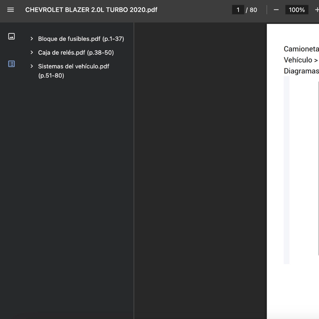 PDF visible en teléfono, tablet y PC; listo para consulta en campo. Compatible únicamente con Chevrolet Blazer 2.0L Turbo 2020. Si requieres otra variante/modelo, contáctanos.