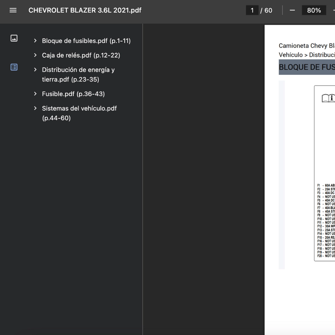 PDF visible en teléfono, tablet y PC; compatible solo con CHEVROLET BLAZER 3.6L 2021. Si requieres otra variante/modelo, contáctanos.