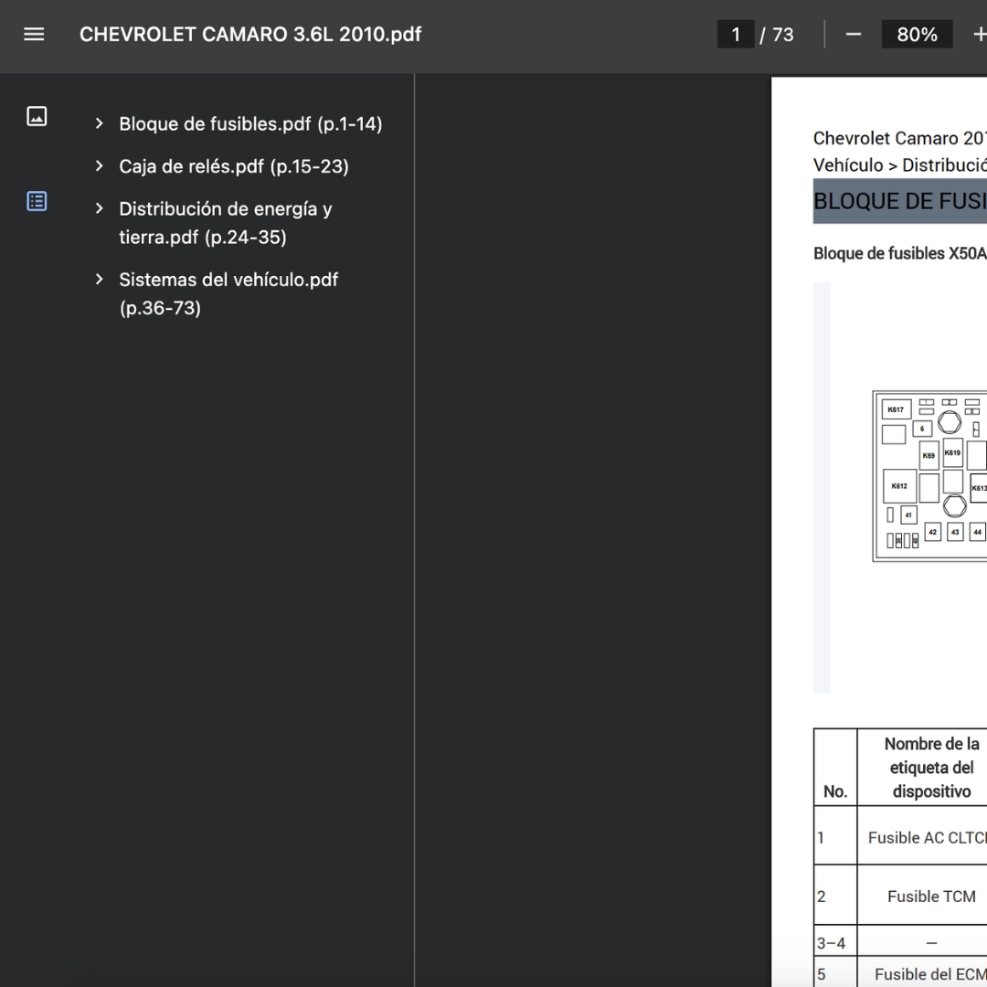 PDF visible en teléfono, tablet y PC; compatible solo con CHEVROLET CAMARO 2010. Si requieres otra variante/modelo, contáctanos.