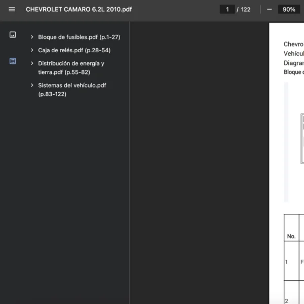 PDF legible en teléfono, tablet y PC; compatible solo con CHEVROLET CAMARO 2010. Si requieres otra variante/modelo, contáctanos.
