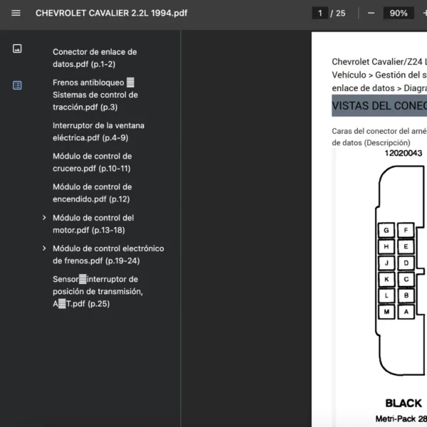 PDF visible en teléfono, tablet o PC; compatible solo con CHEVROLET CAVALIER 1994. Si requieres otra variante/modelo, contáctanos.