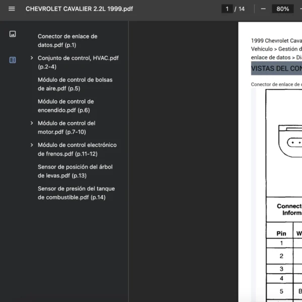 Sé el primero en valorar “Pin Out / Vista de Conectores CHEVROLET CAVALIER 2.2L 1999 PDF”
