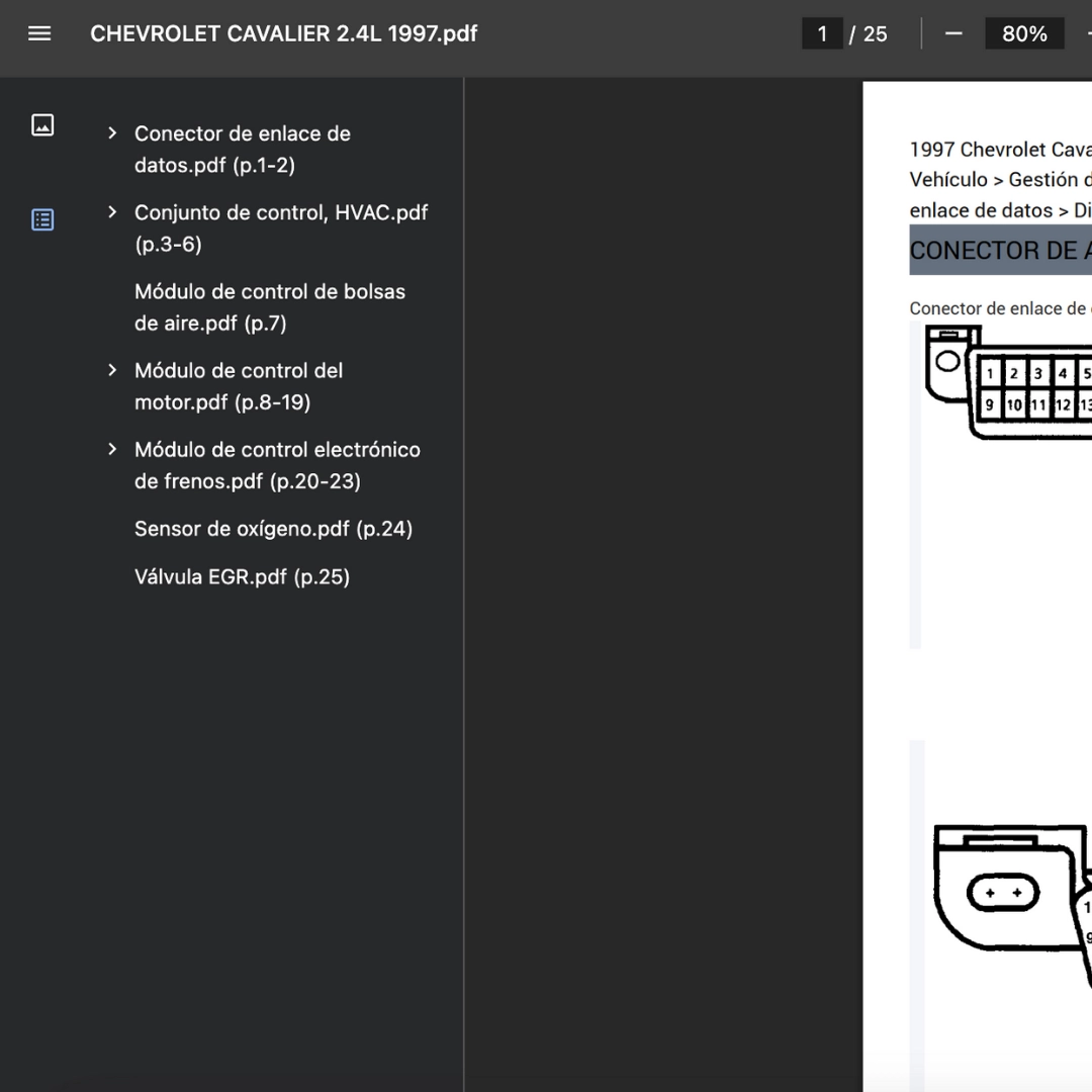 - Conector de enlace de datos.pdf (p.1-2): pines DLC para escáner y energía.