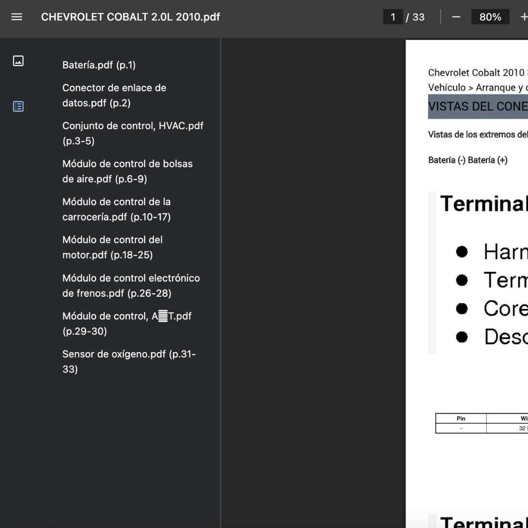 PDF visible en teléfono, tablet y PC; compatible solo con CHEVROLET COBALT 2010. Si requieres otra variante/modelo, contáctanos.