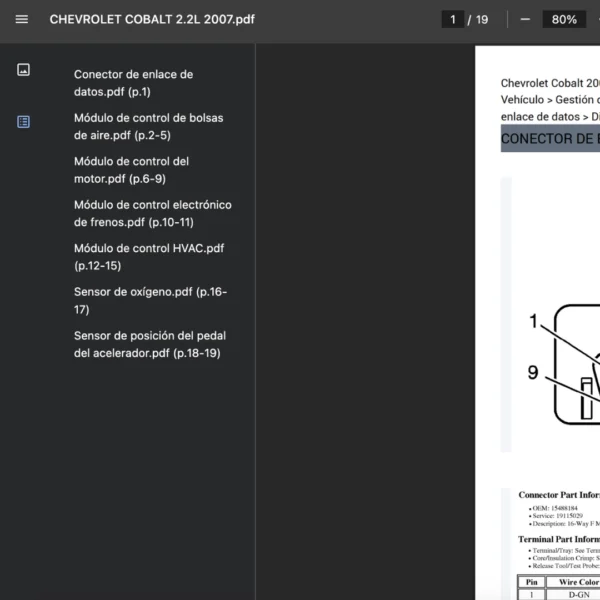 PDF visible en teléfono, tablet y PC; compatible solo con CHEVROLET COBALT 2007. Si requieres otra variante/modelo, contáctanos.