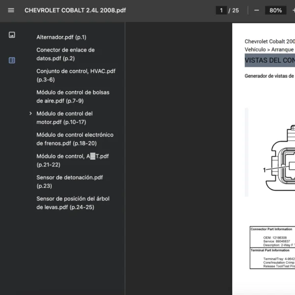 PDF visible en teléfono, tablet y PC; compatible solo con CHEVROLET COBALT 2008. Si requieres otra variante/modelo, contáctanos.