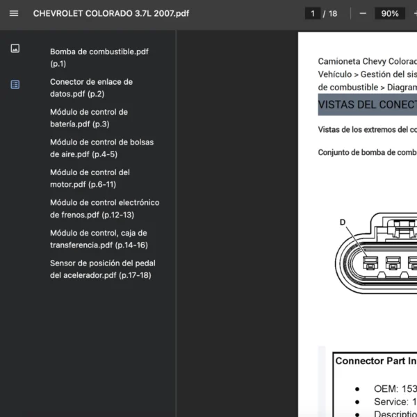 PDF visible en teléfono, tablet y PC; compatible solo con CHEVROLET COLORADO 2007. Si requieres otra variante/modelo, contáctanos.