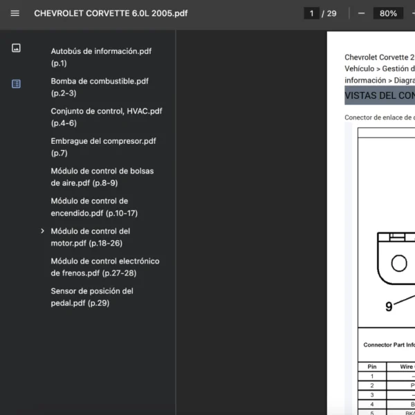 PDF visible en teléfono, tablet o PC; compatible solo con CHEVROLET CORVETTE 2005. Si requieres otra variante/modelo, contáctanos.