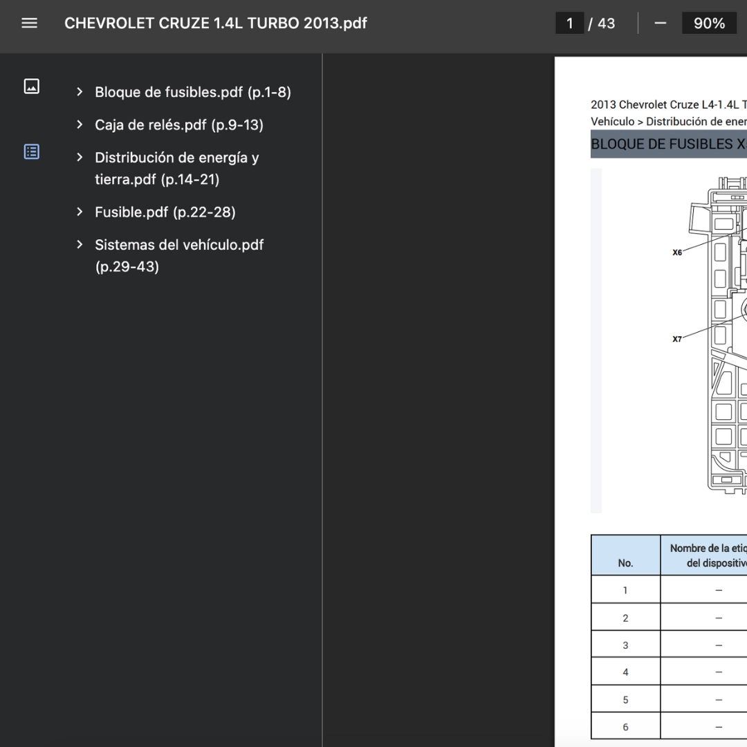 PDF visible en teléfono, tablet o PC; compatible solo con Chevrolet Cruze 2013. Si requieres otra variante/modelo, contáctanos.