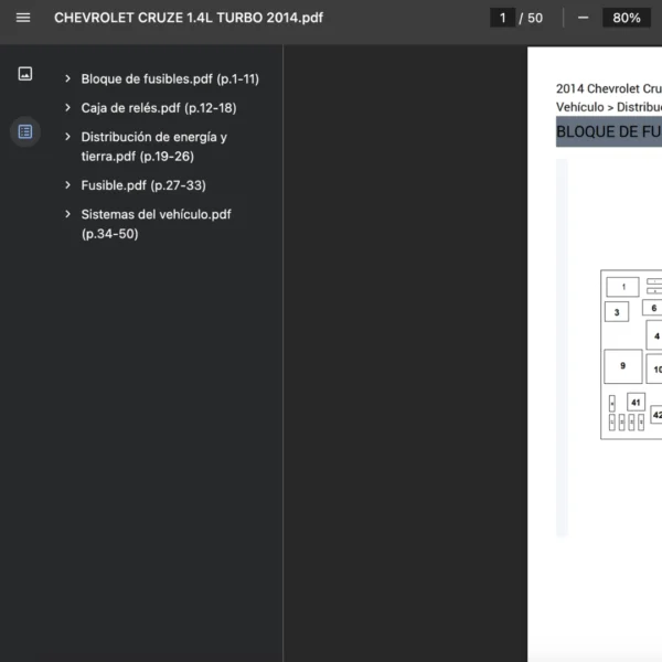 PDF legible en teléfono, tablet o PC; compatible solo con Chevrolet Cruze 1.4L Turbo 2014. Si requieres otra variante/modelo, contáctanos.