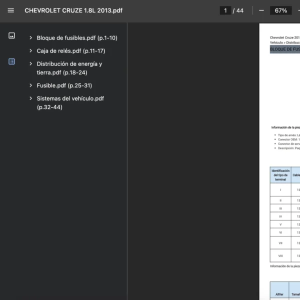 PDF visible en teléfono, tablet o PC; compatible únicamente con Chevrolet Cruze 1.8L 2013. Si requieres otra variante/modelo, contáctanos.