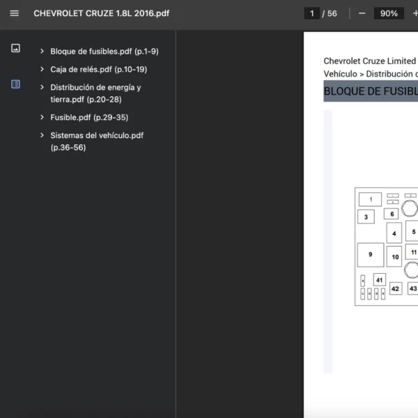 PDF visible en teléfono, tablet o PC; compatible solo con Chevrolet Cruze 1.8L 2016. Si requieres otra variante/modelo, contáctanos.
