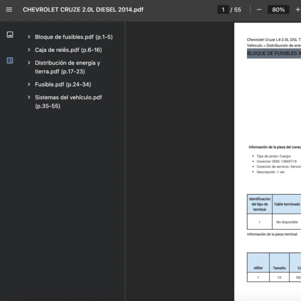PDF visible en teléfono, tablet o PC; compatible únicamente con Chevrolet Cruze 2014. Si requieres otra variante/modelo, contáctanos.