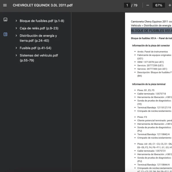 Sé el primero en valorar “Pin Out / Vista de Conectores CHEVROLET EQUINOX 3.0L 2011 PDF”