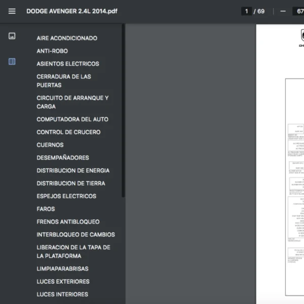 Si estas buscando un manual eléctrico de la marca Dodge modelo Avenger de 2.4L año 2014, este es el diagrama automotriz que necesitas.