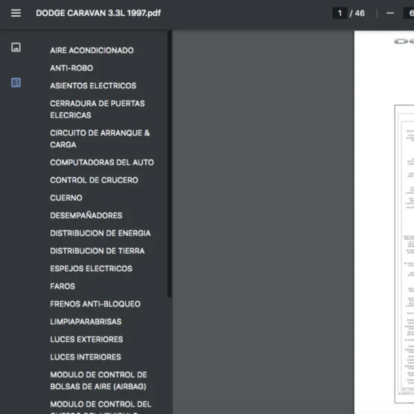 Si estas buscando un manual eléctrico de la marca Dodge modelo Caravan de 3.3L año 1997, este es el diagrama automotriz que necesitas.