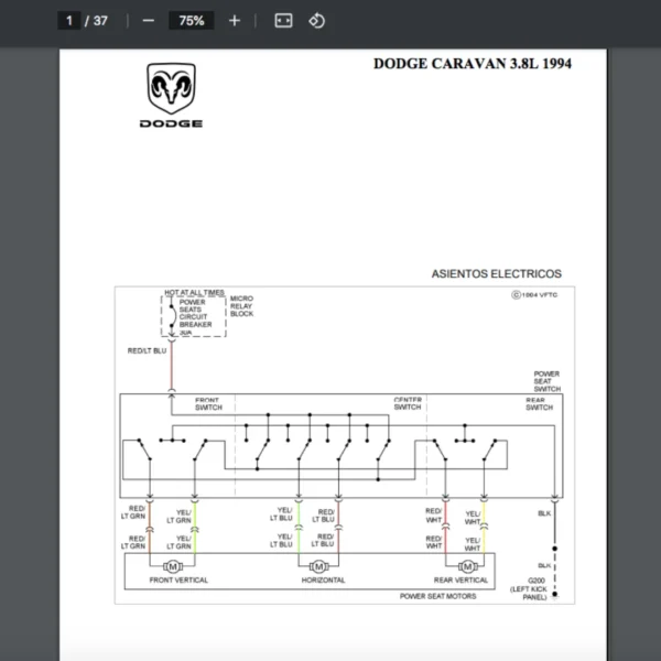 Si estas buscando un manual eléctrico de la marca Dodge modelo Caravan de 3.8L año 1994, este es el diagrama automotriz que necesitas.