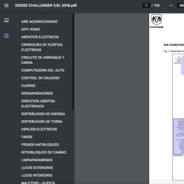 Si estas buscando un manual eléctrico de la marca Dodge modelo Challenger de 3.6L año 2018, este es el diagrama automotriz que necesitas.