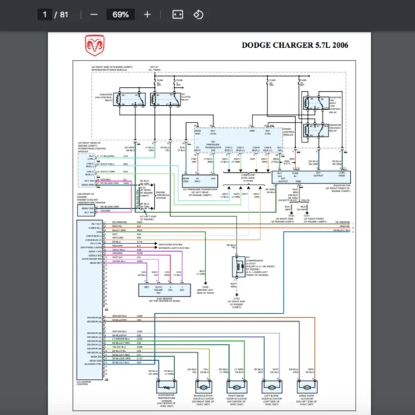 Si estas buscando un manual eléctrico de la marca Dodge modelo Charger de 5.7L año 2006, este es el diagrama automotriz que necesitas.