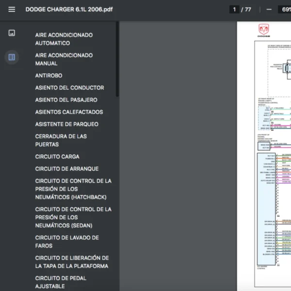 Si estas buscando un manual eléctrico de la marca Dodge modelo Charger de 6.1L año 2006, este es el diagrama automotriz que necesitas.
