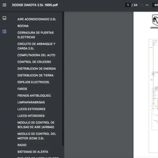 Si estas buscando un manual eléctrico de la marca Dodge modelo Dakota de 2.5L año 1995, este es el diagrama automotriz que necesitas.