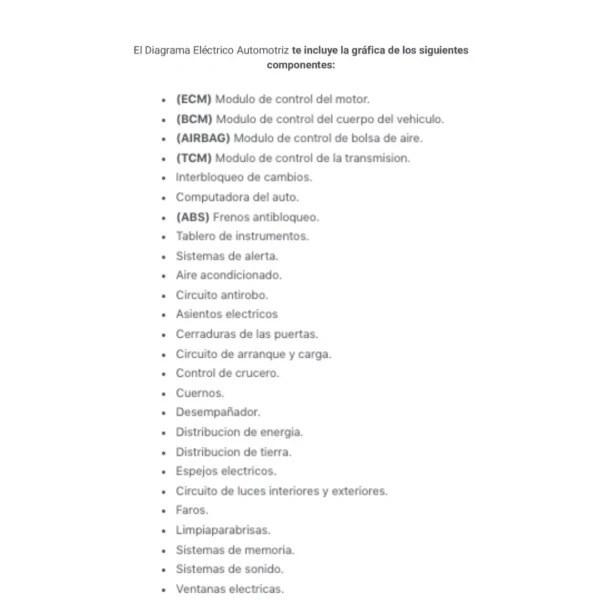 El Diagrama Eléctrico Automotriz te incluye la gráfica de los siguientes componentes: