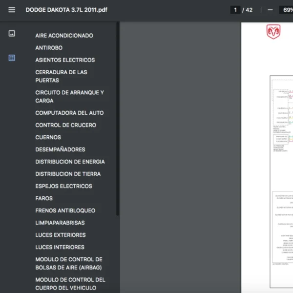 Si estas buscando un manual eléctrico de la marca Dodge modelo Dakota de 3.7L año 2011, este es el diagrama automotriz que necesitas.