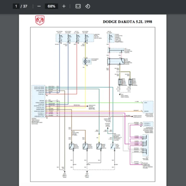 Si estas buscando un manual eléctrico de la marca Dodge modelo Dakota de 5.2L año 1998, este es el diagrama automotriz que necesitas.