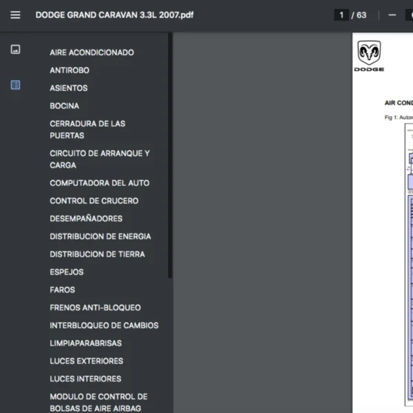 Si estas buscando un manual eléctrico de la marca Dodge modelo Grand Caravan de 3.3L año 2007, este es el diagrama automotriz que necesitas.