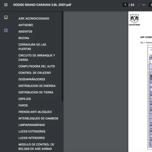 Si estas buscando un manual eléctrico de la marca Dodge modelo Grand Caravan de 3.8L año 2007, este es el diagrama automotriz que necesitas.