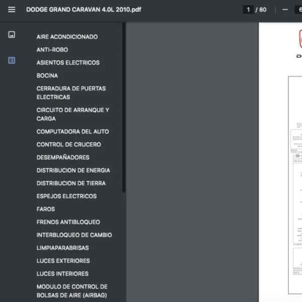 Si estas buscando un manual eléctrico de la marca Dodge modelo Grand Caravan de 4.0L año 2010, este es el diagrama automotriz que necesitas.