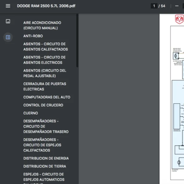 Si estas buscando un manual eléctrico de la marca Dodge modelo RAM 2500 de 5.7L año 2006, este es el diagrama automotriz que necesitas.