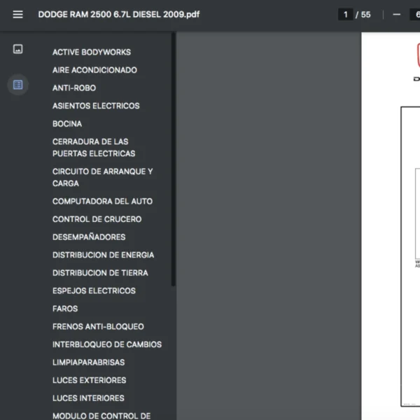 Si estas buscando un manual eléctrico de la marca Dodge modelo RAM 2500 de 6.7L DIESEL año 2009, este es el diagrama automotriz que necesitas.