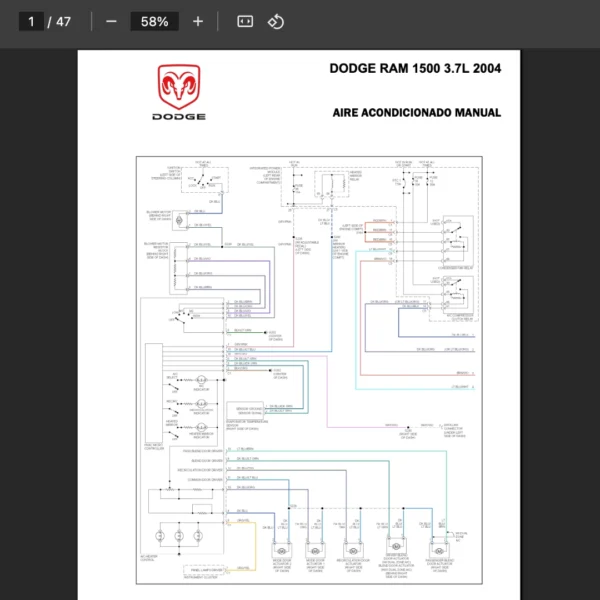 Si estas buscando un manual eléctrico de la marca Dodge modelo RAM 1500 de 3.7L año 2004, este es el diagrama automotriz que necesitas.