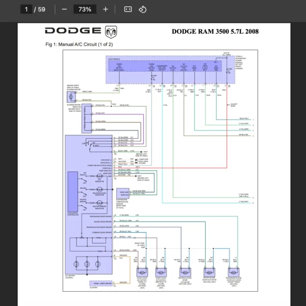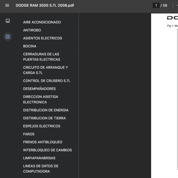 Si estas buscando un manual eléctrico de la marca Dodge modelo RAM 3500 de 5.7L año 2008, este es el diagrama automotriz que necesitas.