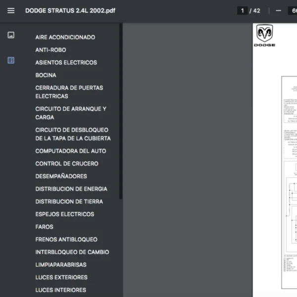 Si estas buscando un manual eléctrico de la marca Dodge modelo Stratus de 2.4L año 2002, este es el diagrama automotriz que necesitas.