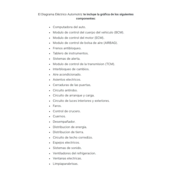 El Diagrama Eléctrico Automotriz te incluye la gráfica de los siguientes componentes: